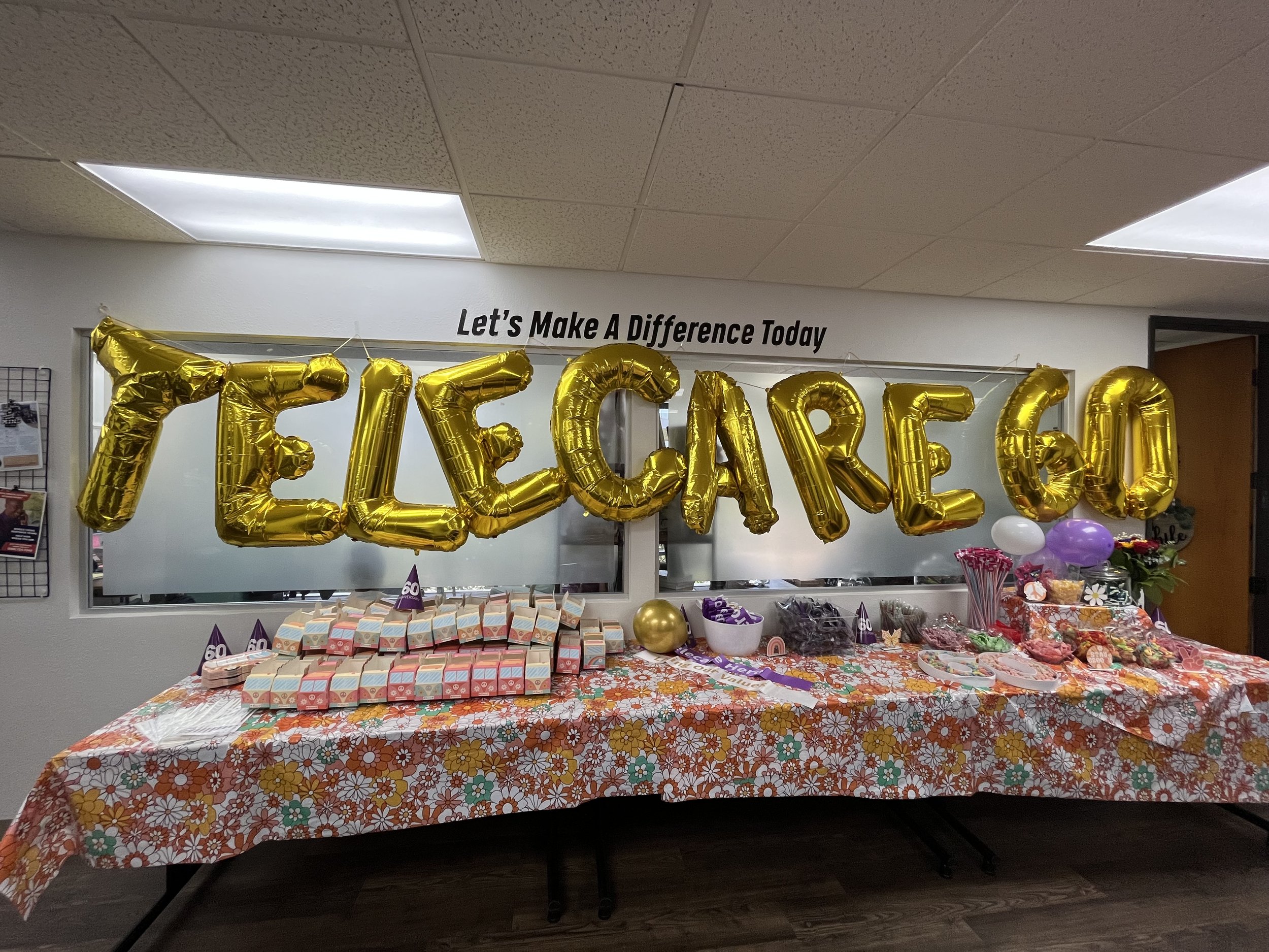 Added a groovy-themed twist to Telecare's 60th anniversary decorations.